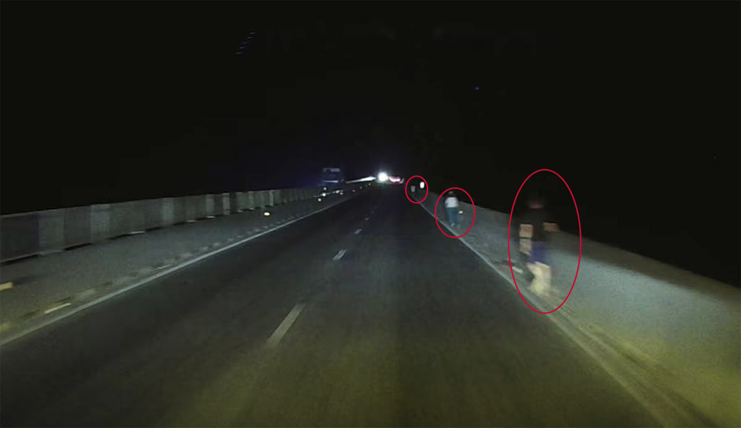 Hình ảnh nhóm người đi bộ trên cao tốc. Ảnh cắt từ clip